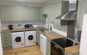 - Donald Michie House has a fully equipped kitchen including an oven, stove top / hob, kettle, microwave, fridge freezer, basic cooking equipment, cutlery, crockery, washing machine, dryer and dishwasher
